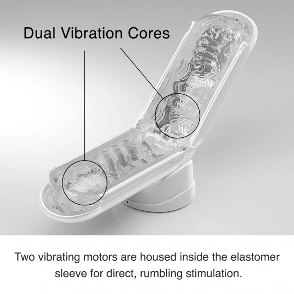Le Tenga Flip Zero EV White embarque pas un seul, mais deux « noyaux vibrants » logés à l’intérieur de l’élastomère apportant une sensation largement hors du commun. Des sensations intenses grâce à ses deux demi-cylindres texturés rondes et souples. Les dessins de sa structure en trois dimensions internes uniques sont spécialement conçus pour maximiser votre plaisir sur toute la longueur de partie insérable. Les deux gros boutons latéraux en forme d’oblongs vous permettront de gérer la pression selon vos envies en générant au passage une puissante aspiration pour des sensations des plus intenses ! La lubrification peut se faire de deux manières différentes : La première en ouvrant les deux flasques pour y étaler le lubrifiant directement sur toute la longueur de la structure. La deuxième en versant le lubrifiant dans l’orifice d’insertion.