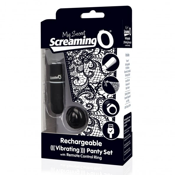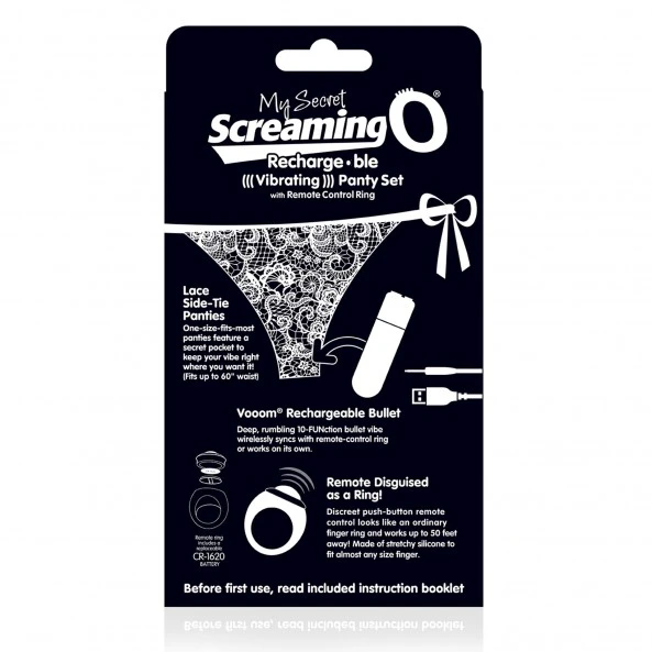 La culotte vibrante The Screaming O My Secret se compose d’un oeuf vibrant, d’une télécommande en forme de bague et d’une culotte en dentelle à lacets adaptée à un tour de taille jusqu’à 150 cm.