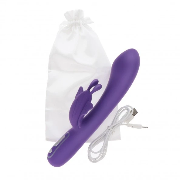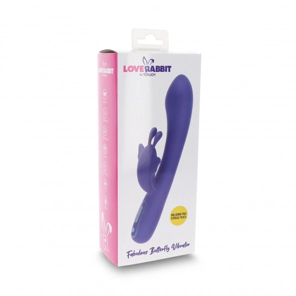 Rabbit Fabulous Butterfly Vibrator fait partie de la gamme Love Rabbit de Toy Joy® offrant toute une série de plaisirs uniques pour chaque modèle. Les dimensions de ce double stimulateur très design sont de bonne taille (Longueur insérable : 13,5 cm pour un diamètre : Ø 3,8 cm). La partie haute active dont l’extrémité est légèrement incurvée vise à stimuler de manière intense le point-G. La deuxième (Rabbit) est destinée à la stimulation du clitoris via ses 2 ailes ainsi que ses 2 petites antennes souples. L’ensemble de ces fonctions se pilote à l’aide de seulement 3 boutons. Il est verrouillable et déverrouillage par une simple pression d’environ 3 secondes afin d’éviter toutes mises en routes intempestives. Il est doux et flexible vous offrant une ergonomie et qu’un confort d’utilisation hors du commun.