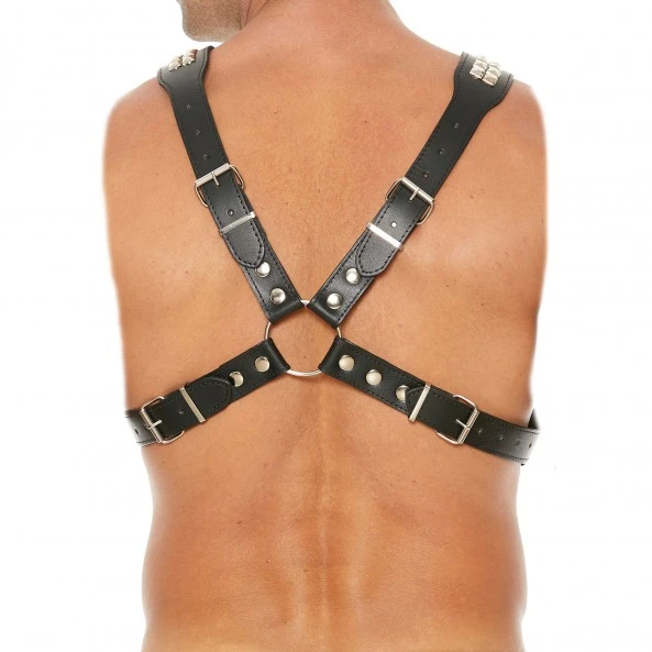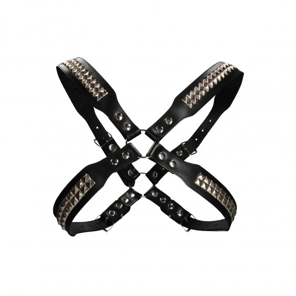 Uomo propose ici le modèle Pyramide de son classique harnais. En lui-même, le harnais reprend les codes de la collection avec des atouts indéniables dont il serait dommage de se priver. On pense tout d’abord à la qualité du modèle, avec son cuir véritable et l’acier inoxydable. On aime ensuite ses sangles qui permettent un ajustement parfait au niveau du torse et des épaules. Un harnais qui ne tient pas, et c’est tout son sex-appeal qui disparaît dans la seconde. Si bien évidemment ce harnais est pensé pour les jeux sexuels (soumission, bondage etc) avec ses anneaux métalliques comme point d’ancrage, le harnais est un complément vestimentaire. En club ou en soirée, il appuiera vos envies et votre personnalité. Les clous pyramidaux qui font la particularité de ce modèle renforce ont d’ailleurs encore un peu plus votre virilité.