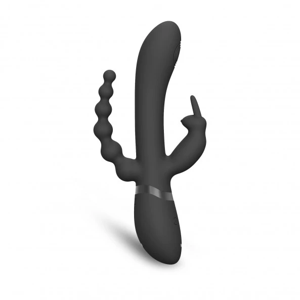 Le Vibromasseur Rabbit & Anal RINI est conçu pour 3 stimulations complètement indépendantes. Il est efficace sur la zone clitoridienne, le conduit vaginal, mais regroupe beaucoup de ses forces sur la zone du Point-G. Il stimulera de manière indépendante les zones voulues pour que l’orgasme vaginal ou clitoridien soit le plus rapidement atteint. Trois parties actives indépendantes animent ce jouet rempli de technologies innovantes. La première(Rabbit), aura la fonction de stimuler le clitoris grâce à de puissantes vibrations. La seconde réside sur la hampe pénétrante, légèrement courbée. Elle a pour cible votre Point-G de deux façons différentes. Premièrement, avec de puissantes vibrations le long la hampe pour agir tout au long du conduit vaginal, mais aussi sur le Point-G. La seconde manière consiste à activer le moteur de tapotements qui est dédié exclusivement au Point-G. Associez les deux modes, et vous obtiendrez un puissant orgasme en un temps-record. Enfin, si vous le désirez, la mini-chaîne anale vous permettra de transmettre les vibrations à cet endroit très intime. Sa conception, sa matière ainsi que sa forme dynamique vous transportera au sommet du plaisir de 1000 façons différentes.