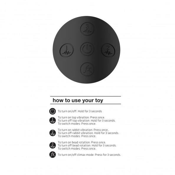 3,6 centimètres de diamètre et d’une longueur totale de 21,5 centimètres en silicone ultra souple et flexible pour une adaptation des plus confortables selon la zone stimulée. Autonomie : Environ 50 minutes à pleine puissance. Chargement en 3H00 par prise USB (cordon inclus). Pressez le bouton central pendant 3 secondes pour éteindre ou allumer le stimulateur.