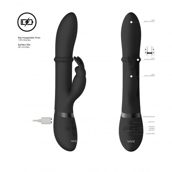 Le vibromasseur Rabbit HALO VIVE est conçu pour 3 stimulations indépendantes aussi efficaces sur la partie clitoridienne, la zone du Point-G, mais également le conduit vaginal. Il stimulera de manière indépendante les zones voulues pour que l’orgasme vaginal ou clitoridien soit plus rapidement atteint. Trois parties actives indépendantes animent ce jouet rempli de technologies innovantes. La première aura la fonction de stimuler le clitoris grâce aux vibrations des petites « oreilles » du lapin. La seconde, volumineuse, légèrement courbée et vibrante se chargera de votre Point-G. Enfin, la troisième caractéristique particulière de HALO réside dans un anneau qui oscille sur la hampe de bas en haut pour une stimulation sur toute la longueur du vagin. Un orgasme puissant sera obtenu en temps-record. Sa conception, sa matière ainsi que sa forme dynamique vous transportera au sommet du plaisir de près de 1000 manières différentes.