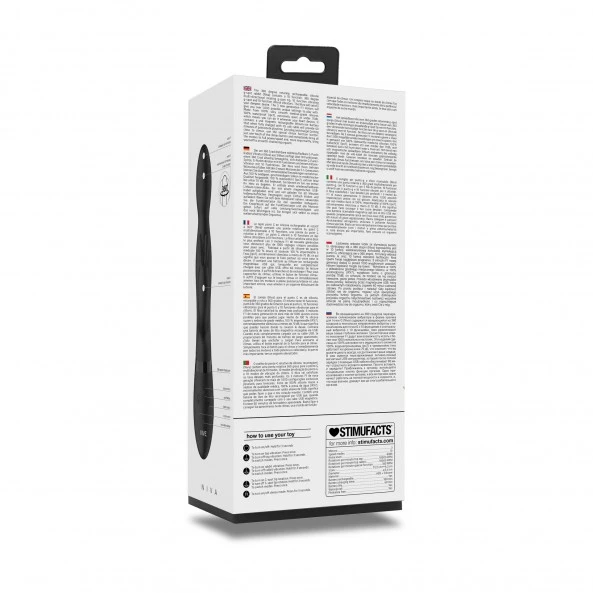 3,4 centimètres de diamètre et d’une longueur totale de 21,5 centimètres en silicone ultra souple et flexible pour une adaptation des plus confortables selon la zone stimulée. Autonomie : Environ 50 minutes à pleine puissance. Chargement en 3H00 environ par prise USB (cordon inclus). Pressez le bouton central pendant 3 secondes pour éteindre ou allumer le stimulateur.