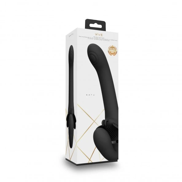 Le Vibromasseur Strap-On Clitoris et Point-G Satu de VIVE est le second « Strap-on » de la marque. Il diffuse autant de plaisirs au porteur qu’au receveur. Sa conception, sa matière ainsi que sa forme dynamique vous transportera vous et votre partenaire au sommet du plaisir de près de 1000 manières différentes. Côté « receveur », la hampe incurvée de 14 cm est conçue pour une stimulation intense du Point-G ou le Point-P chez les hommes. Elle est animée par 2 puissants moteurs indépendants qui diffusent simultanément tapotements pour l’un et vibrations pour l’autre. Côté « porteur », la partie pénétrante stimule lui aussi efficacement le Point-G grâce au troisième et dernier moteur. Ce dernier vibre également sur la partie externe en contact étroit avec toute la zone clitoridienne. En résumé, Satu est un double sex-toy capable de satisfaire les plus exigeants des couples en recherche de nouvelles pratiques et des sensations qui en découlent.