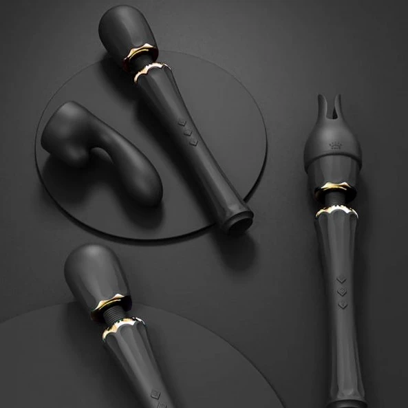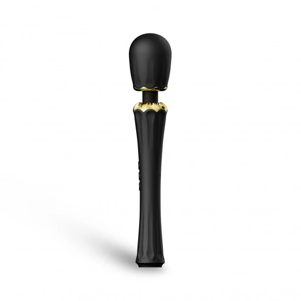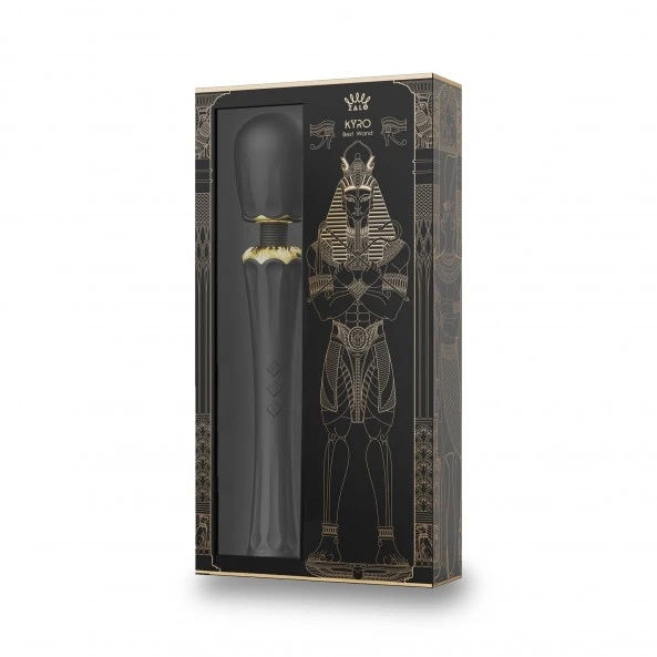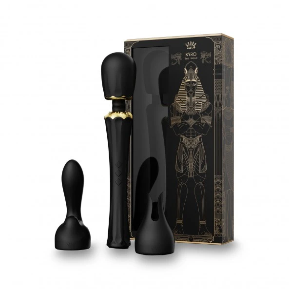 Le Wand Kyro Massager est un jouet de très haut de gamme conçu principalement pour une stimulation du clitoris, mais pas seulement. Utiliser seul, sans les 2 accessoires fournis et comme tous les wands, il est dédié à la stimulation intense de la zone clitoridienne. Muni d’une tête flexible à 360°, vous pourrez doser et appliquer avec précision la tête sur la zone choisie. Doté d’un moteur extrêmement puissant, vous pourrez faire grimper les vibrations jusqu’à 5.000 vibrations par minute. Largement de quoi vous envoyez en un éclair au 7ème ciel. Les 3 boutons en relief vous permettront de le faire fonctionner facilement sans avoir besoin de regarder. Ils vous donnent accès à 5 programmes différents ainsi qu’à 6 vitesses de vibration. Coiffez-le de l’embout pénétrant et vous obtenez un stimulateur Point-G hors du commun. Le second embout est, quant à lui conçu pour être appliqué soit sur les mamelons de votre poitrine, mais également directement sur votre clitoris. Son poids relativement léger pour ce type de jouet (322 Grs) est un atout supplémentaire pour le Kyro Massager. Les parties métalliques de style Égyptien sont plaquées Or de 18 carats donne la touche élégante à ce Wand d’exception.